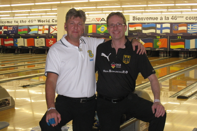 Soojenduse ajal tundus, et eile ametliku treeningu ajal oli midagi muud maha määritud kui täna. Proovisin Up-Risinguga servast võimalikult sirgelt mängida aga enamus kordi keeras üle. Liikudes veidi ülespoole hakkasid pallid aga läbi libisema. Tundus ka kuivem kui treeningul. Physicsiga polnud mõtet proovidagi. Mängu alustades andis üks rada striket ja teine tootis sparesid, kuni sarja lõpu poole tegin vea, üles oli jäänud 3,6,10 ja pihta sain ainult 3.-le kurikale .Tulemuseks oli ainult 177. Minu nende päevade rajapartneriks on eriti täpne Achim Grabowski, kes selles sarjas mulle pika puuga ära sügas…178. Kuus rada paremale ja uus mäng. Esimene vise …pähe ja split, edasi sparemäng ja mõned juhustriked…jälle split ja seejärel libises jalg alt ja kümp jäi lauale. Kohutav, 161. Need kaks esimest sarja jäid täna hoovõturaja libisemise taha. Tänane silikoonimees oli eriti korrapäratult ainet maha hõõrunud. Mõni koht libises nagu jääl ja mõni võttis jala kinni. Kui jalga ikka usaldada ei saa, siis pole ka viskest midagi tulemas. Pärast kahte sarja olid minu seljataga hommikuses vahetuses visanud Etioopia ja veel paar maad. Ülle vaatas mind niiii etteheitva pilguga….no teate küll kuidas madu enne jänese kugistamist selle pilguga halvab…. Korra tuli mõte jätta pallid saali minna koju. Aga kus sa pääsed, tuleb emotsioonidest üle olla. Järgmine rajapaar ja seltskonda liitus Dennis Eklund. Püüdsin libisemise peale enam mitte mõelda ja alustasin. Nüüd mängisin joont 15-8. Esimene vise veidi paks tasku ja neljas kurikas….edasi oli lust ja lillepidu, vist 7. ruudus panin mäemetsa. Oi kuidas seda viljandit oli vaja! Kümnenda ruudu teise viske ajal tõmbasin veidi sisse ja jälle 4. kurikas, mille viskasin jala kõrvalelibisemise tulemusena mööda. Sari tuli 278, tänase päeva teine tulemus. Jälle ninas veepeal ehk 616.
